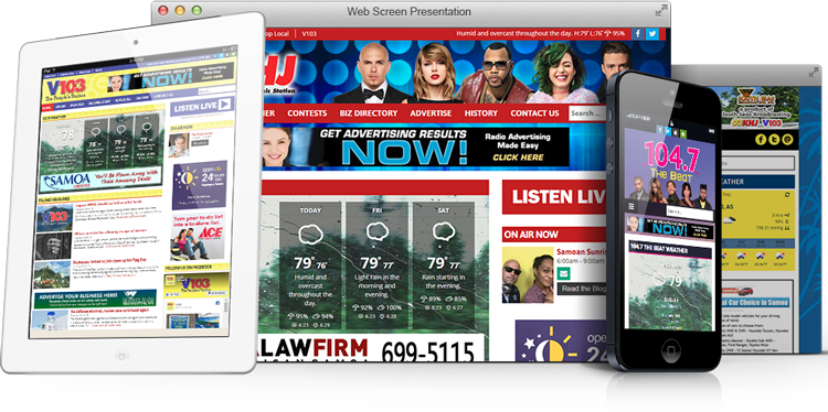 South Seas Broadcasting, Inc. offers several ad formats and numerous targeted page locations. Consult your sales representative for a complete list of online opportunities, audience counts and targeting locations.Top/Bottom Leaderboard: This placement is available as a shared space on any station web page. Up to five advertisers rotate randomly in each position. All 5 banners rotate in a carousel-style to ensure they all receive exposure.