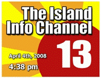The Island Info Channel features local news, national news, weather, classified ads, plus ads from local businesses.